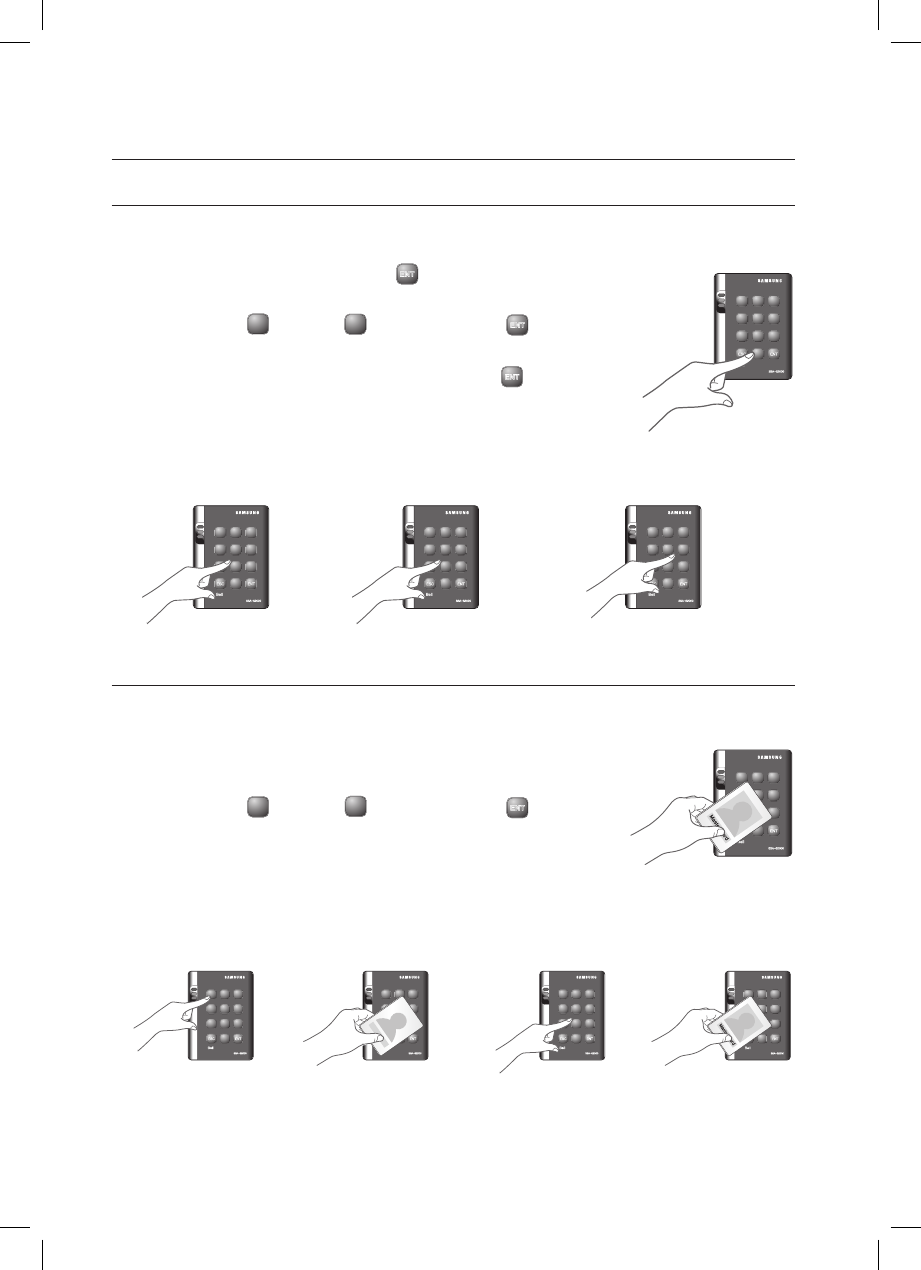 Present cards or PIN numbers (4-6 digits) to register with the device one after