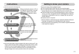 Instructions Getting to know your camera ƈ Use this camera in the following order Set up the camera driver Take a picture Insert the USB cable Before connecting the camera to a PC, via the USB cable, you will need to set up the camera driver. Install the camera driver that is contained in Application software CD-ROM. (p.64) Take a picture. (p.13) Insert the supplied USB cable into the PC’s USB port and the camera’s USB connection terminal. (p.66) Check the camera’s power Check the camera’s power.