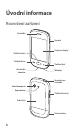 Úvodní informace Tlačítko Funkce • Klepnutím otevřete seznam Menu dostupných možností na aktuální obrazovce. • Klepnutím a podržením tlačítka na domovské obrazovce spusťte službu Google Search. • Stisknutím tlačítka se vraťte na domovskou obrazovku. Domů • Stisknutím a podržením otevřete seznam nedávno spuštěných aplikací. Zpět Hlasitost • Klepnutím na tlačítko se vraťte na předchozí obrazovku. • Stisknutím upravte hlasitosti zařízení.