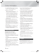 Appendix Additional Information Note HDMI OUT Connections • Certain HDMI output resolutions may not work, depending on your TV. • You must have an HDMI connection to enjoy videos with 3D technology. • A long HDMI cable may cause screen noise. If this occurs, set HDMI Deep Color to Off in the menu. 3D Settings • For some 3D discs, to stop a movie during 3D playback, press the 5 button once. The movie stops and the 3D mode option is de-activated.