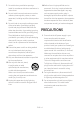 Notes on Bluetooth connection •• Locate a new device within 3.28 ft (1 m) to connect via Bluetooth communication. •• If asked for a PIN code when connecting a Bluetooth device, enter <0000>. •• The Soundbar automatically turns off after 18 minutes in the Ready state. •• The Soundbar may not perform Bluetooth search or connection correctly under the following circumstances: –– If there is a strong electrical field around the Soundbar.
