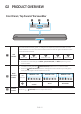 02 PRODUCT OVERVIEW Front Panel / Top Panel of the Soundbar Top Panel The LED Indicator flashes, glows, or changes color depending on the Soundbar's current mode or status. The color of the LED indicator and the number of lights indicate the active mode as described below. LED indicator W W M W W White LED White LED Multicolor LED White LED White LED •• The Multicolor LED changes to White, Cyan, Green, Red, and Blue depending on the mode or status.
