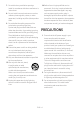 Notes on Bluetooth connection •• Locate a new device within 3.28 ft (1 m) to connect via Bluetooth communication. •• If asked for a PIN code when connecting a Bluetooth device, enter <0000>. •• The Soundbar automatically turns off after 18 minutes in the Ready state. •• The Soundbar may not perform Bluetooth search or connection correctly under the following circumstances: –– If there is a strong electrical field around the Soundbar.
