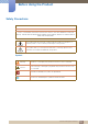 Before Using the Product Electricity and Safety The following images are for reference only. Real-life situations may differ from what is shown in the images. Warning Do not use a damaged power cord or plug, or a loose power socket. z An electric shock or fire may result. Do not plug many products into the same power socket. z Otherwise, the socket may overheat and cause a fire. Do not touch the power plug with wet hands. z Otherwise, an electric shock may result.