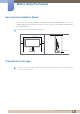 Before Using the Product Securing the Installation Space z Ensure some space around the product for ventilation. An internal temperature rise may cause fire and damage the product. Be sure to allow the amount of space as shown below or greater when installing the product. The exterior may differ depending on the product. 3.93 inches (10 cm) 3.93 inches (10 cm) 3.93 inches (10 cm) 3.93 inches (10 cm) 3.
