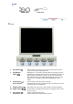 Cable D-Sub Cable Power Cord Front 1. Menu button [ ] Use this button to open the on-screen menu and exits from the menu screen or closes screen adjustment menu. 2. MagicBright™ button [ ] MagicBright™ is a new feature providing optimum viewing environment depending on the contents of the image you are watching. Currently four different modes are available: Custom, Text, Internet, and Entertain. Each mode has its own pre-configured brightness value.
