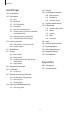 Indhold Grundlæggende brug 4 6 10 14 17 22 23 25 27 29 42 44 68 73 76 78 79 97 103 111 114 Læs dette først Situationer med overophedning af enheden og tilhørende løsninger Enhedens udseende og funktioner Batteri SIM- eller USIM-kort (nano-SIM-kort) Tænde og slukke for enheden Indledende konfiguration Samsung account Overføre data fra din forrige enhed (Smart Switch) Forstå skærmen Informationspanel Indtaste tekst 117 120 124 124 125 126 127 129 129 131 132 133 136 Apps og funktioner 47 49 53 57 59 63 I