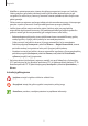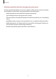 Pagrindai • Šiose situacijose gali atsirasti ryšio problemų ir išsikrauti akumuliatorius: – – Jei prietaiso antenos plote pritvirtinsite metalinių lipdukų – – Jei prie prietaiso pritvirtinsite prietaiso dangtelį, pagamintą iš metalinių medžiagų – – Jei uždengsite prietaiso antenos plotą rankomis arba kitais objektais naudodamiesi tam tikromis funkcijomis, tokiomis kaip skambučiai arba mobiliųjų duomenų ryšys • Rekomenduojama naudoti „Samsung“ patvirtintą ekrano apsaugos plėvelę.
