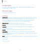Settings • Show battery percentage: Display the battery charge percentage next to the battery icon on the Status bar. • Battery information: Display the battery status and level. Storage Review your storage capacity and detailed usage by category and file type. ◌ From Settings, tap Device care > Storage. • Tap a category to manage files. Memory Check the amount of available memory. You can close background apps and reduce the amount of memory you are using to speed up your device.