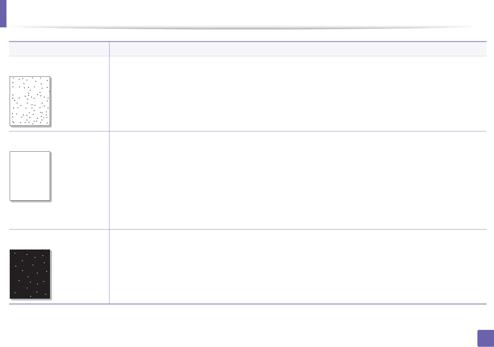 • Gyári hibás a papír. A gyártási folyamat hibái miatt lehet, hogy helyenként nem tapad a festék a papírra. Próbálkozzon más