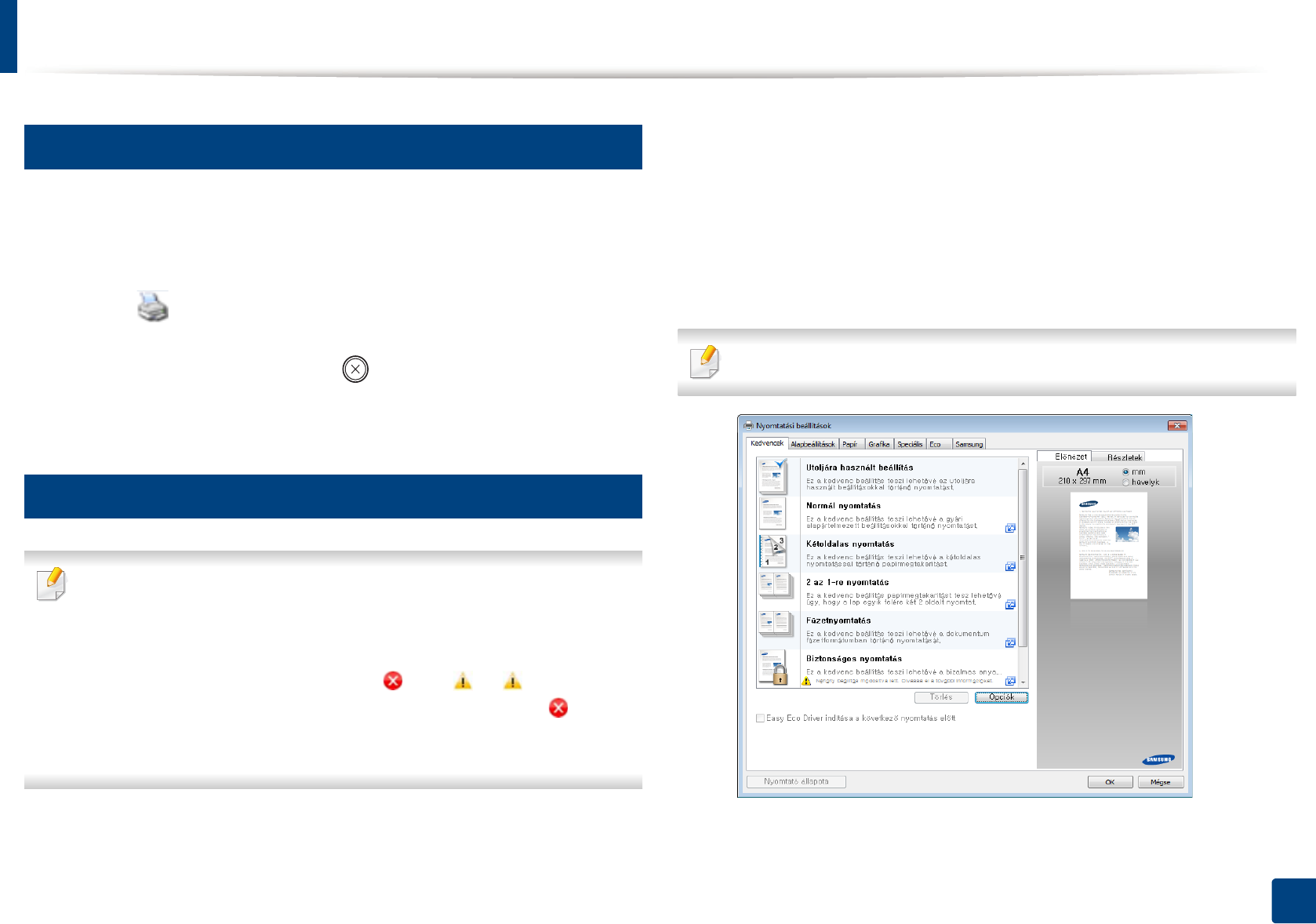 •Amikor a Nyomtatási beállítások ablakban kiválaszt egy beállítást,