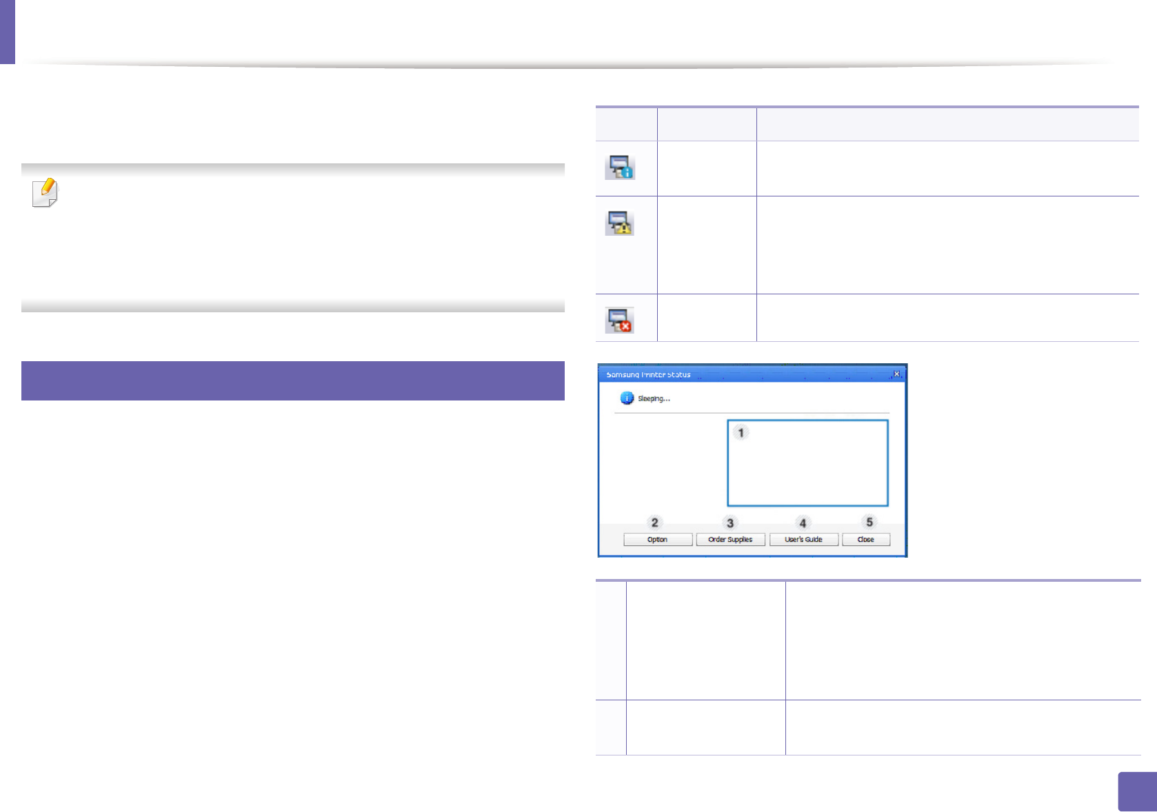 •Prozor Samsung Printer Status i njegov sadržaj prikazani u ovom