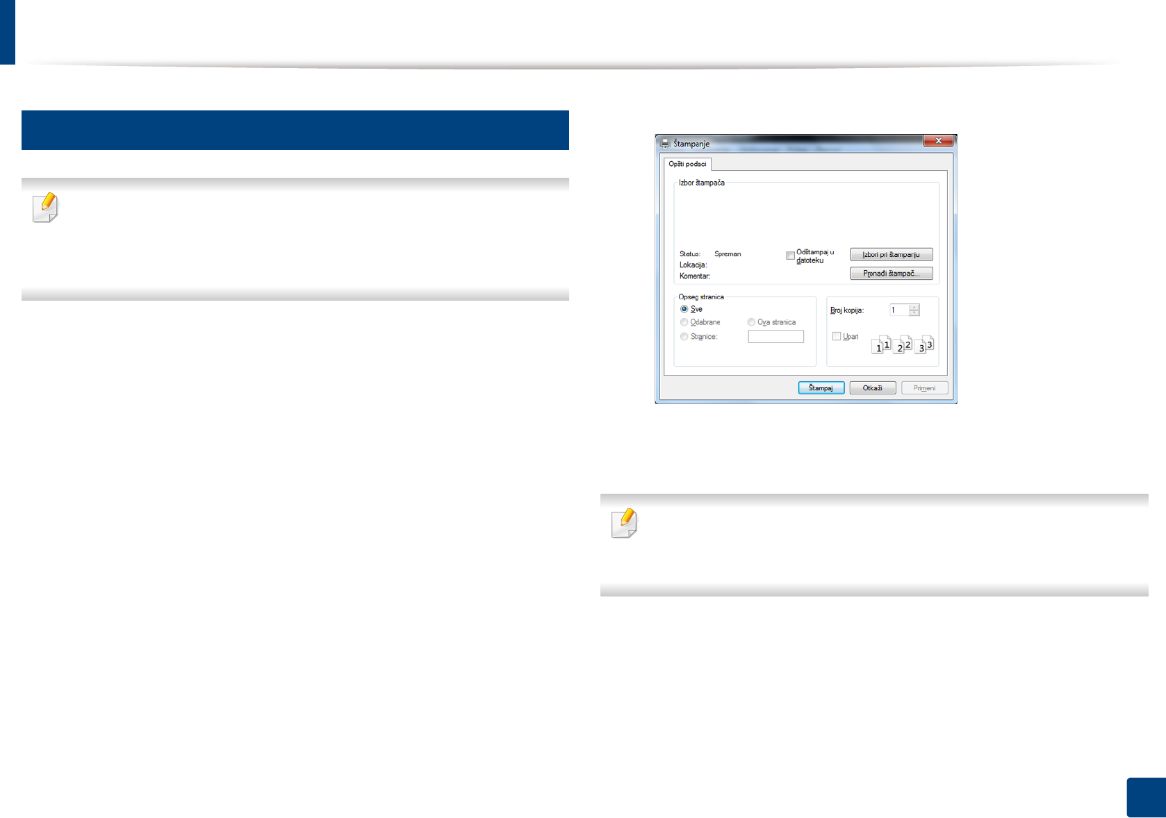 Za začetek tiskanja kliknite U redu ali Štampanje v oknu