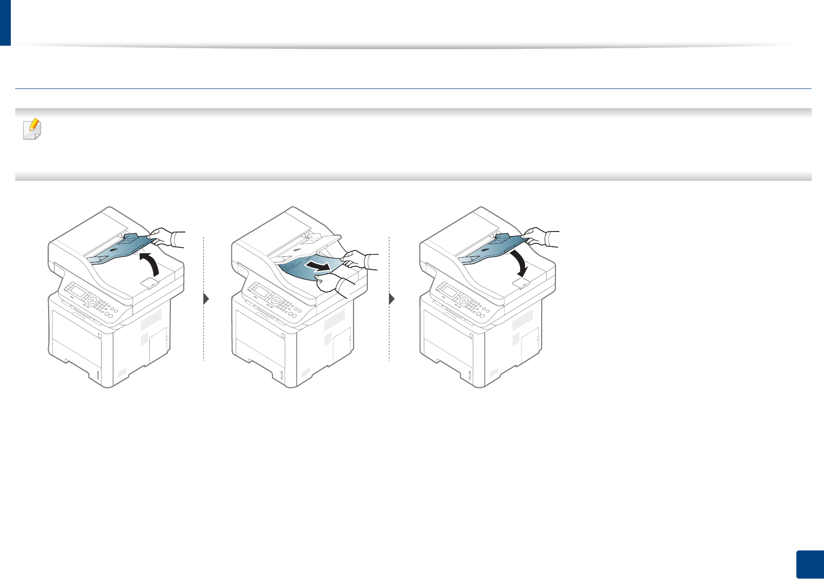 Blocarea hârtiei originale în zona de ieşire a scanerului
