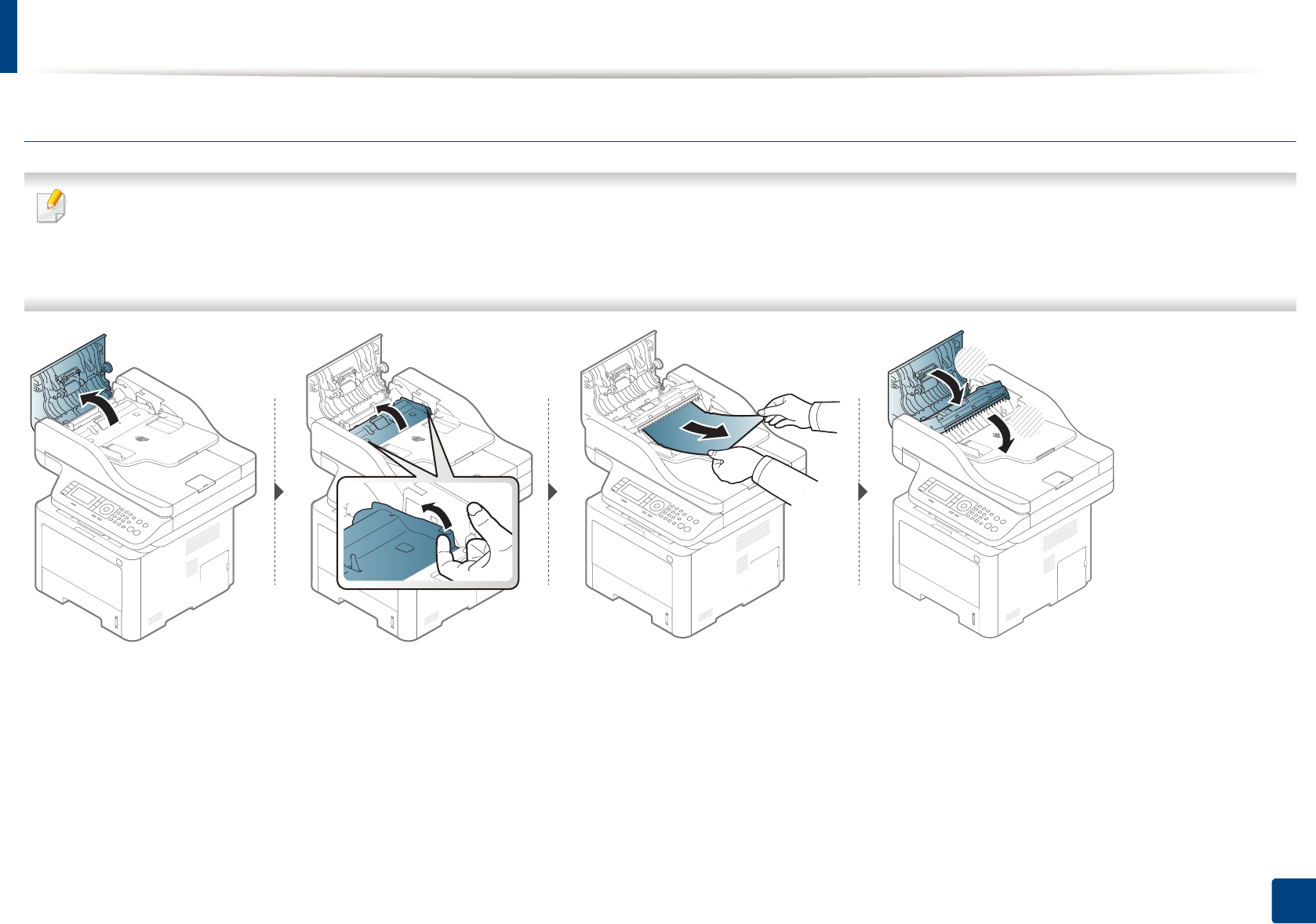 •Această metodă de depanare este disponibilă în func?ie de model (Alimentator automat de documente duplex (DADF) compatibil) (consultaţi "Diferite