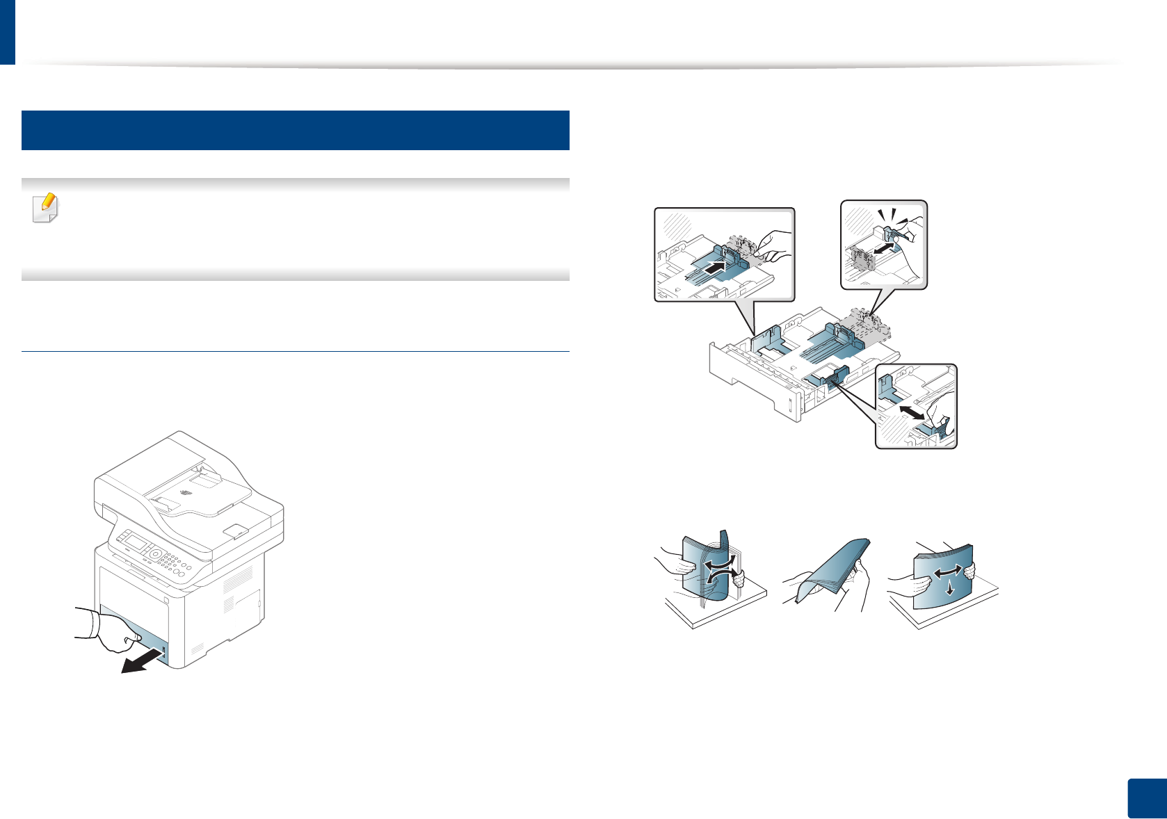 Strângeţi ghidajul de lăţime şi braţul de lungime al hârtiei pentru a le