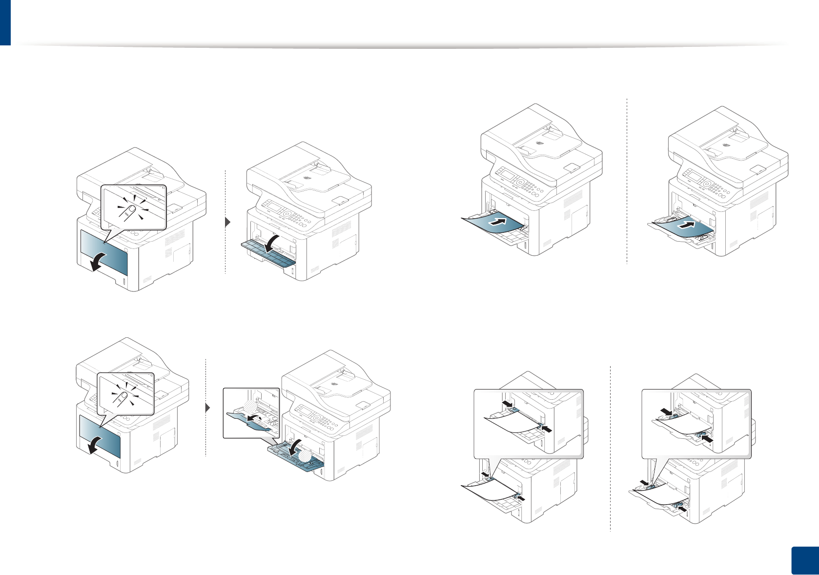 (sau alimentatorul manual) şi reglaţi-le la lăţimea hârtiei. Nu forţaţi