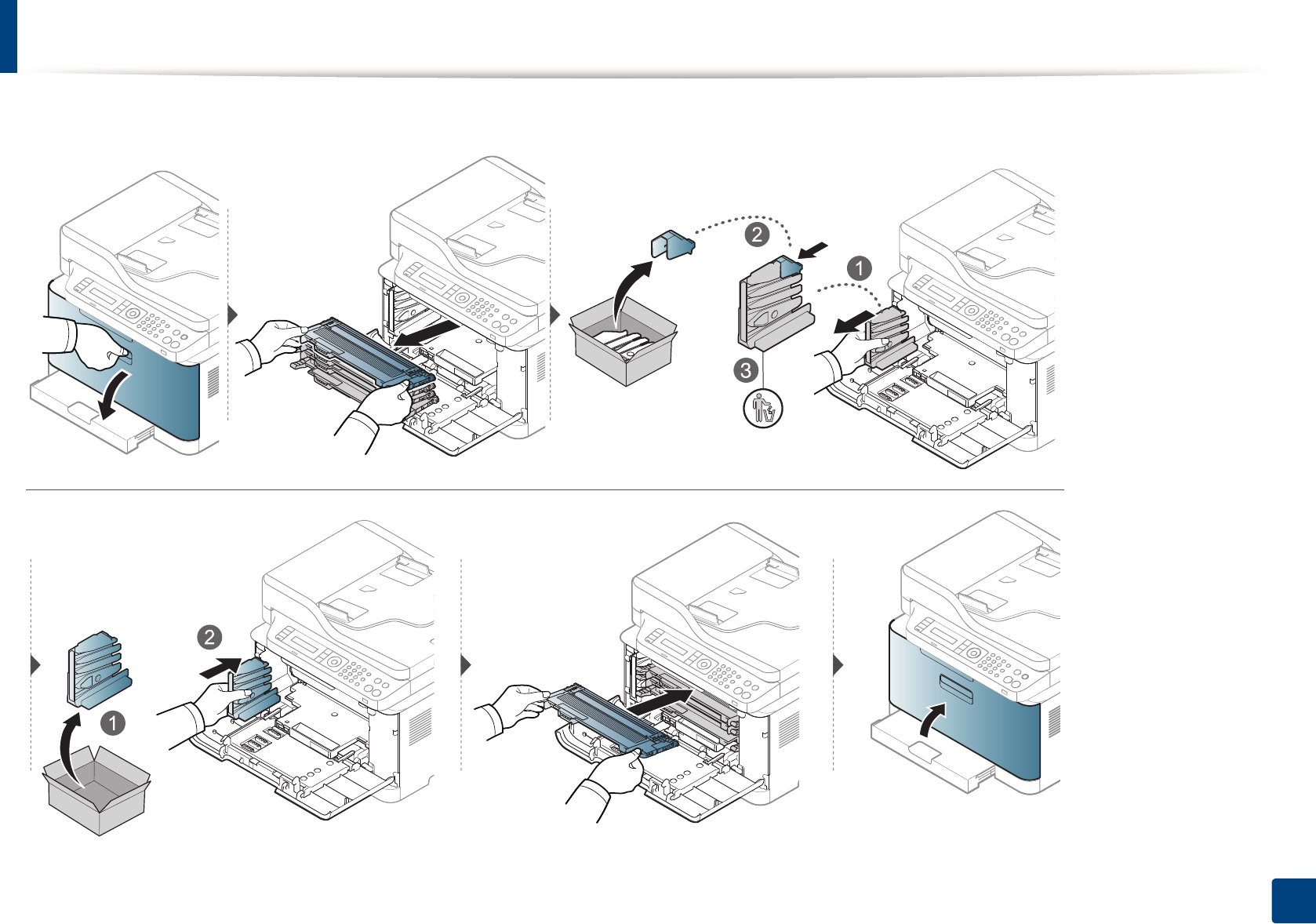 Substituindo o recipiente para descarte de toner