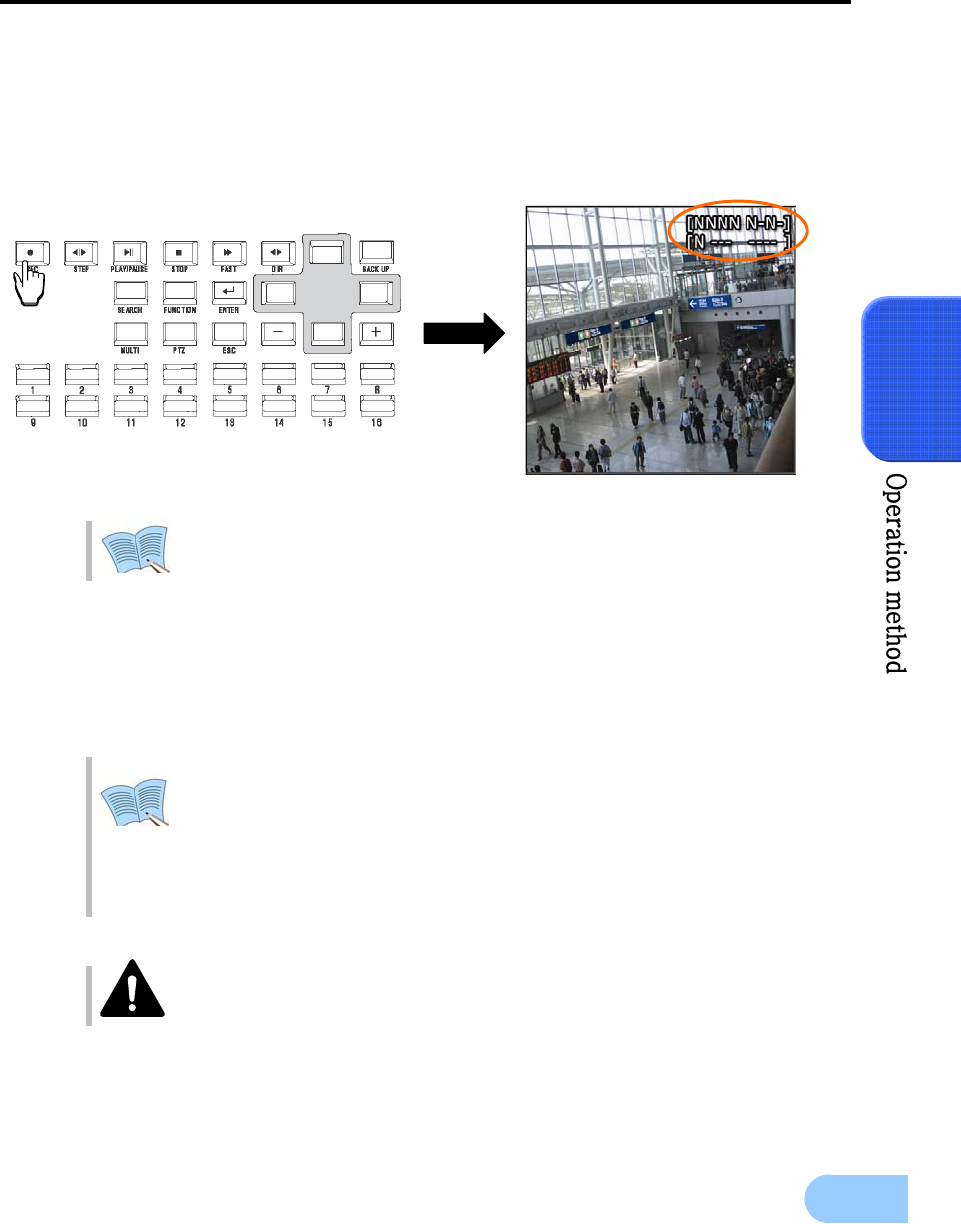 If REC button is pressed, red LED is turned ON, N is displayed in the upper right corner and video