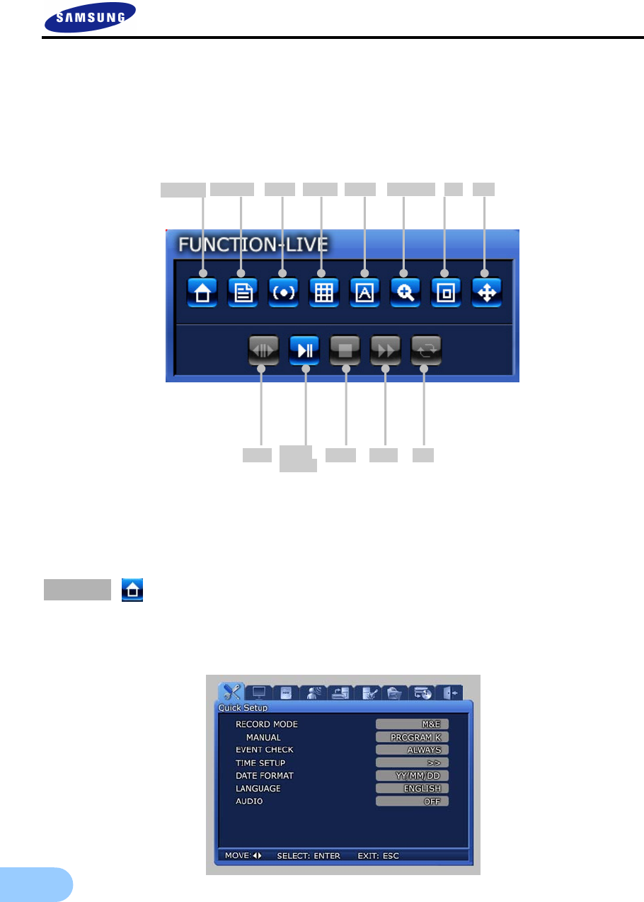 If MAIN button is pressed from FUNCTION-LIVE, the convenient setup screen, shown below, is