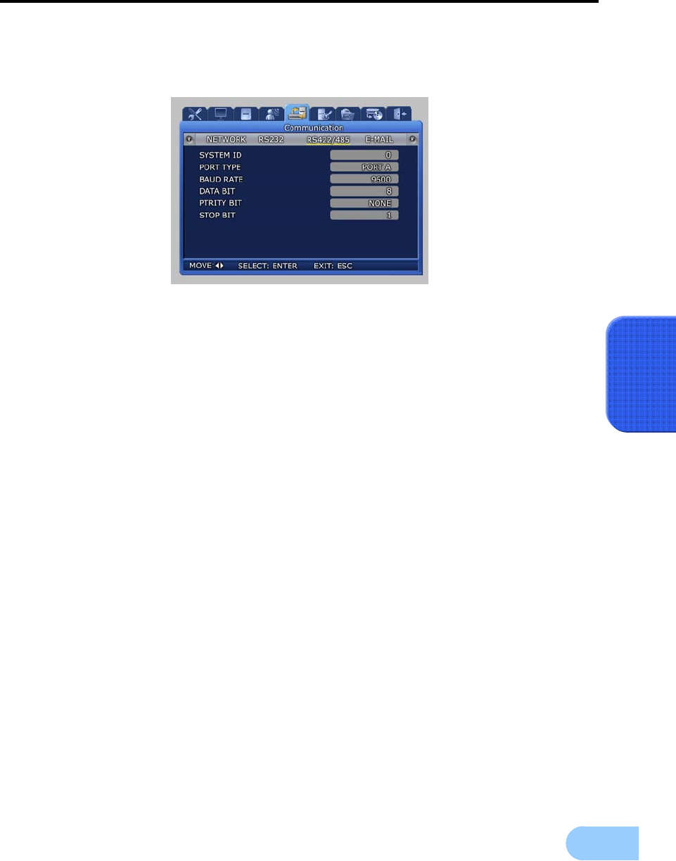 After moving SYSTEM → PTZ, setup protocol for each channel and the ID