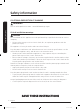 Safety information Installation cautions CAUTION This appliance should be positioned in such a way that the power plug is easily accessible. • Failure to do so may result in electric shock or fire due to electric leakage. Safety information Install your appliance on a solid, level floor that can support its weight. • Failure to do so may result in abnormal vibrations, movement, noise, or problems with the product.