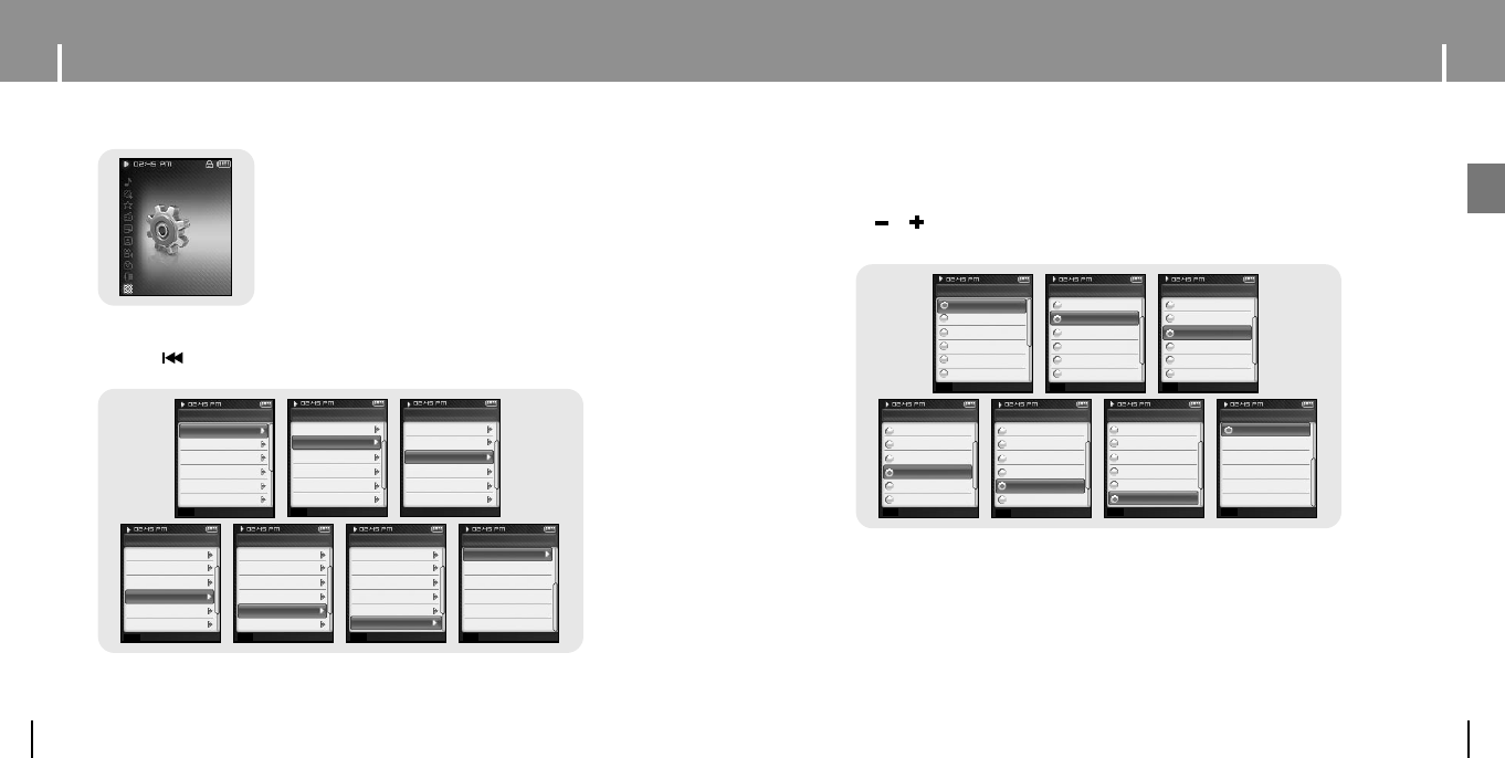 Press and hold the MENU button to move to menu and select [Settings] → [Music].