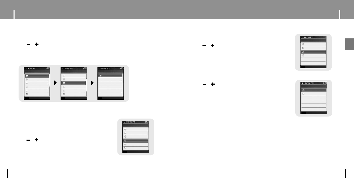 Press and hold the MENU button to move to menu and select [Settings] → [Music].