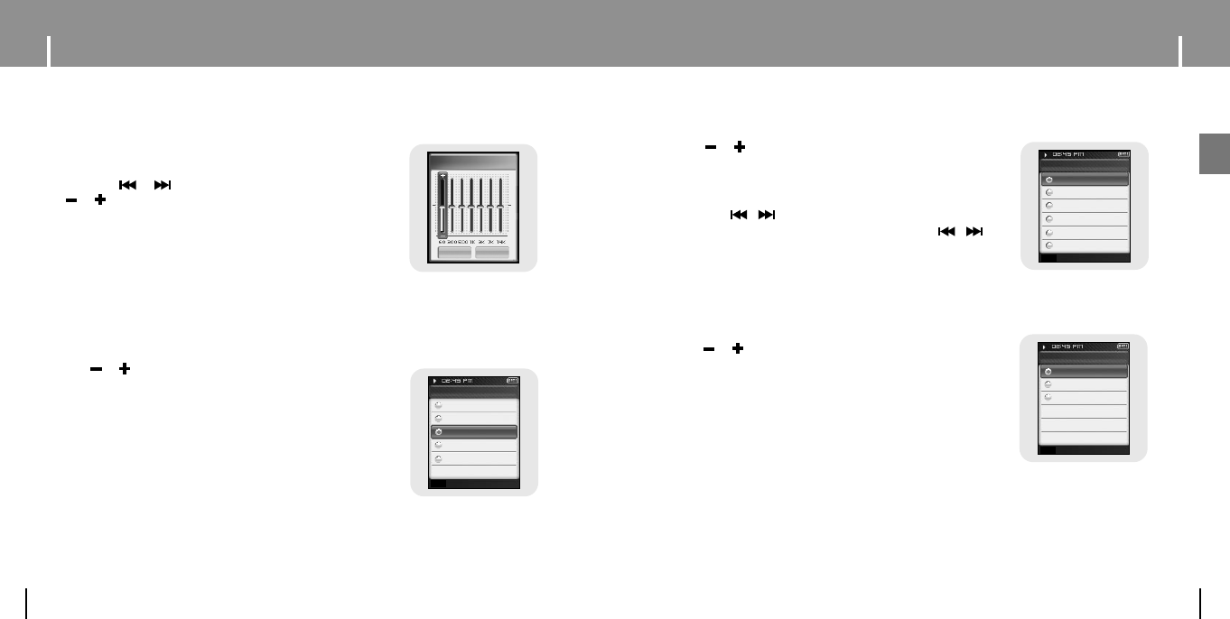 Press and hold the MENU button to move to menu and select [Settings] → [Music].