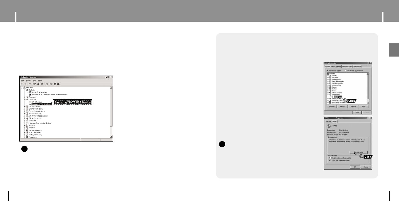 Control Panel → System → Device Manager → Disk Drives → Samsung YP-T8