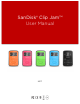 CHAPTER 2 This chapter describes the features and functionality of the SanDisk Clip Jam MP3 player. SanDisk Clip Jam MP3 Player Overview Congratulations on your purchase of a SanDisk Clip Jam™ MP3 player! Put the fun back into music-on-the-go with the compact and colorful Clip Jam digital music player you can clip on and take anywhere. The bright one-inch screen and big navigation buttons make it easy to drag, drop and play files in popular audio formats including AAC.