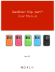 CHAPTER 2 This chapter describes the features and functionality of the SanDisk Clip Jam MP3 player. SanDisk Clip Jam MP3 Player Overview Congratulations on your purchase of a SanDisk Clip Jam™ MP3 player! Put the fun back into music-on-the-go with the compact and colorful Clip Jam digital music player you can clip on and take anywhere. The bright one inch screen and big navigation buttons make it easy to drag, drop and play files in popular audio formats including AAC.