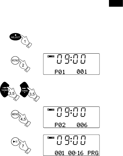 6. Repeat step 5 to store as many as 20 tracks in the programme.