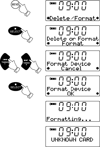 "OK" and then press the Select button. The display will show "Formatting..." while all of the