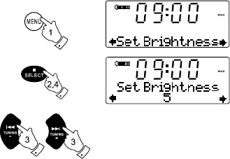 1. Press and hold the Menu button so that the display shows “Set Brightness” on the lower line of
