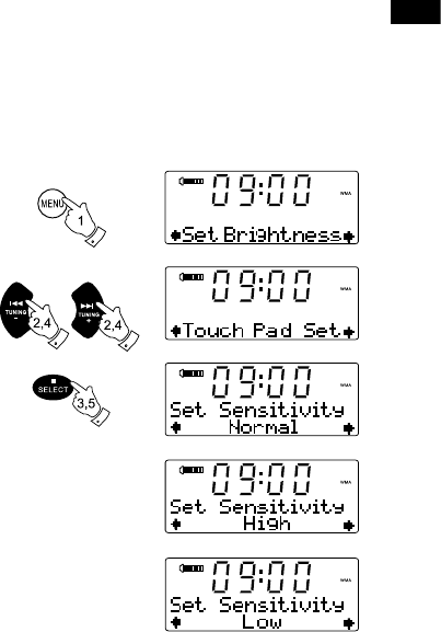 The sensitivity of the touch panel may be adjusted. The default setting will normally be found