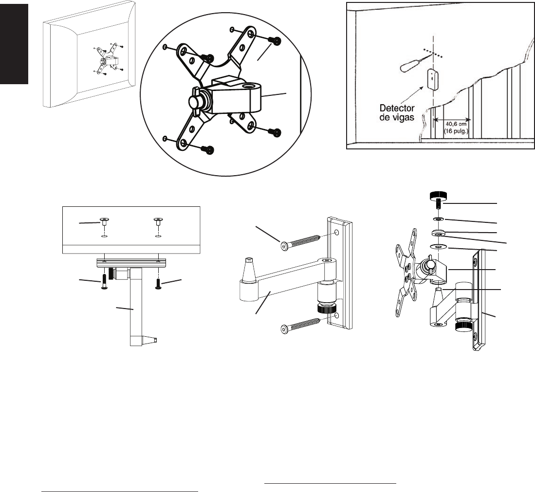 demás aplicaciones de montaje, ponerse en contacto con un contratista o una ferretería local. Utilizar un detector de vigas