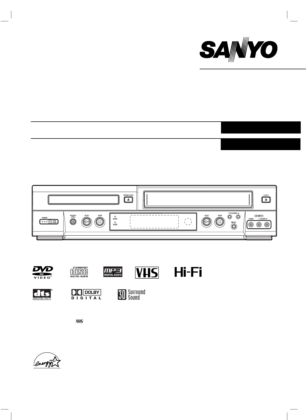 INSTRUCTION MANUAL DVC-2600 DVD Player + Video Cassette Recorder English Lecteur DVD + Magnétoscope à cassette Français Only cassettes marked can be used with this video cassette recorder. As an ENERGY STAR® Partner, SANYO has determined that this product or product model meets the ENERGY STAR® guidelines for energy efficiency. Please read this manual carefully before connecting your DVD+VCR and operating it for the first time. Keep the manual in a safe place for future reference.