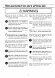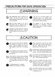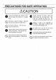 PRECAUTIONS FOR SAFE OPERATION ~CAUTION o Always hold the handle when closing the door. Always disconnect the power supply plug This will prevent the likelihood of a trapped before moving the unit during transit. Take care not to damage the power cord. The finger. damaged cord may cause electric shock or fire. Never lean or press on the glass. Intentional force may cause injury if the glass breaks. Do not lean on the door. This may cause injury if the unit tips over.