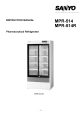 SPECIFICATIONS 41 Name Pharmaceutical Refrigerator Model RPM-514 M PR-514R External dimensions VW00 x DEMO + (58) x H1790 (rmm) Internal dimensions WWB00 x D485 x H1300 {mm) Effective capacity 489 1 486 L Exterior Painted steel Interior Stainless steel Dewar Sliding type, 2-layer pair glass with heat ray reflection film x 2 Insulation Rigid polyurethane foamed-in place Shelves Hard steel wire on polyester coating x § Hard steel wire on polyester coating x 5 Allowable load; 50 kg/shelf Allowable load; 20 kg/
