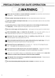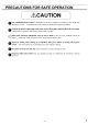 PRECAUTIONS FOR SAFE OPERATION WARNING 0 Ensure you do not inhale or consume medication or aerosols from around the unit at the time of maintenance. These may be harmful to your health. @ Never splash water directly onto the unit as this may cause electric shack or hart circuit Never put containers with liquid on the unit as this may cause electric shock or short circuit when the liquid is spilled. Never bind, process, or step on the power supply cord, or never damage or break the power supply pig.