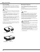 Safety Instructions Air Circulation Moving the Projector Openings in the cabinet are provided for ventilation. To ensure reliable operation of the product and to protect it from overheating, these openings must not be blocked or covered. CAUTION Hot air is exhausted from the exhaust vent. When using or installing the projector, the following precautions should be taken. – Do not put any flammable object or spray can near the projector, hot air is exhausted from the air vents.