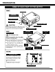 BEFORE OPERATION Operating Range ON-OFF ZOOM BUTTON Used to adjust zoom. (P22) ZOOM FOCUS VOLUME LOCK VOLUME BUTTON Used to adjust volume. (P24) Point Remote Control Unit toward projector (Receiver Window) whenever pressing any button. Maximum operating range for Remote Control Unit is about 16.4’ (5m) and 60° in front and rear of a projector. MUTE D.ZOOM INPUT 1/2 FOCUS BUTTON Used to adjust focus. (P22) D.ZOOM BUTTON MENU INPUT 3 Used to select DIGITAL ZOOM +/– mode and resize image.