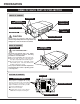 PREPARATION NAME OF EACH PART OF PROJECTOR FRONT OF CABINET SPEAKERS INFRARED REMOTE RECEIVER POWER CORD CONNECTOR PROJECTION LENS MAIN ON / OFF SWITCH LENS COVER CAUTION Do not turn on a projector with lens cover attached. High temperature from light beam may damage lens cover and result in fire hazard. CARRYING HANDLE LEVEL AND TILT ADJUST HANDLE BACK OF CABINET EXHAUST VENT INFRARED REMOTE RECEIVER HOT AIR EXHAUSTED ! Air blown from exhaust vent is hot.