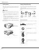 Installation Connecting to Video Equipment (Digital and Video) Cables used for connection q Video Cable w S-Video Cable e DVI-D Cable ✽ Cables are not supplied with the projector. e S-Video Output Video Output Installation Digital Output (HDCP compatible) q w DIGITAL (DVI-D) S–VIDEO VIDEO INPUT 3 VIDEO/Y Cb/Pb S-VIDEO Cr/Pr Note: Unplug the power cords of both the projector and external equipment from the AC outlet before connecting the cables.