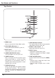 Part Names and Functions q w e r t Part Names and Functions Rear Terminal y u q SERVICE PORT This jack is used to service the projector. w COMPUTER IN /S-VIDEO IN /COMPONENT IN Connect output signal from a computer, RGB scart 21-pin video output, S-VIDEO output, or component video output to this terminal. (p.15-17) y VIDEO IN Connect the composite video output from video equipment to VIDEO jack. (p.16) u AUDIO IN Connect the audio output from video equipment connected to w or y to this jack.