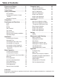 Table of Contents Features and Design . . . . . . . . . . . . . 2 Table of Contents . . . . . . . . . . . . . . . 3 To the Owner . . . . . . . . . . . . . . . . . . . 4 Safety Instructions . . . . . . . . . . . . . . 5 Air Circulation 6 Installing the Projector in Proper Position 6 Moving the Projector 6 Compliance . . . . . . . . . . . . . . . . . . . . 7 Part Names and Functions . . . . . . . .