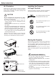 Safety Instructions Air Circulation Openings in the cabinet are provided for ventilation and to ensure reliable operation of the product and to protect it from overheating, and these openings must not be blocked or covered. CAUTION Installing the Projector in Proper Position Install the projector properly. Improper Installation may reduce the lamp life and cause a fire hazard. 20˚ Hot air is exhausted from the exhaust vent.