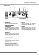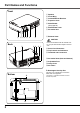 Part Names and Functions Front q Speaker w Focus Ring e Infrared Remote Receiver r Projection Lens t Slide Shutter (See page 52.) y Slide Shutter Lever u Air Intake Vent q wer t y i Exhaust Vents u CAUTION Back i i o !0 !1 u Hot air is exhausted from the exhaust vent. Do not put heat-sensitive objects near this side.