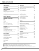 Table of Contents Table of Contents 2 To the Owner 3 Safety Instructions 4 Air Circulation Installing the Projector in Proper Position Moving the Projector 5 5 5 Compliance 6 Connecting the AC Power Cord 7 Features and Design 8 Part Names and Functions 9 Front Back Bottom Terminal Top Remote Control Remote Control Operating Range Remote Control Batteries Installation 9 9 9 10 11 12 13 13 Installation 14 Positioning the Projector Adjustable Feet Moving the Lens Connecting to Video Equipme